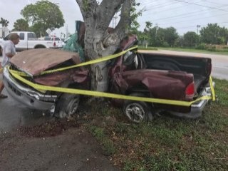 Aracın ağaç ile çarpışması sonucu tonlarca ağırlıktaki dev pikap ortadan iki katlandı. Talihsiz adam içinde bulunduğu araçta feci şekilde can verdi.
