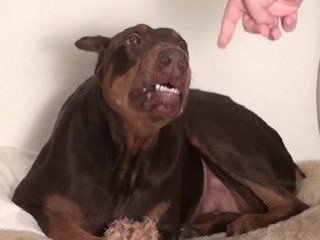 Peaches çok dikkatli bir şekilde sahibini gözlemlemeye başlıyor ve sahibinin eli kendisine doğru yaklaştıkça köpek daha da korkutucu bir hale bürünüyor.