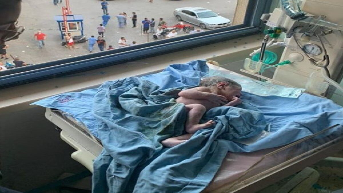 Doğum için El-Rum Hastanesi'nde doğumhaneye alınan Emmanuelle Khnassier, patlamaya doğumhanede yakalandı.