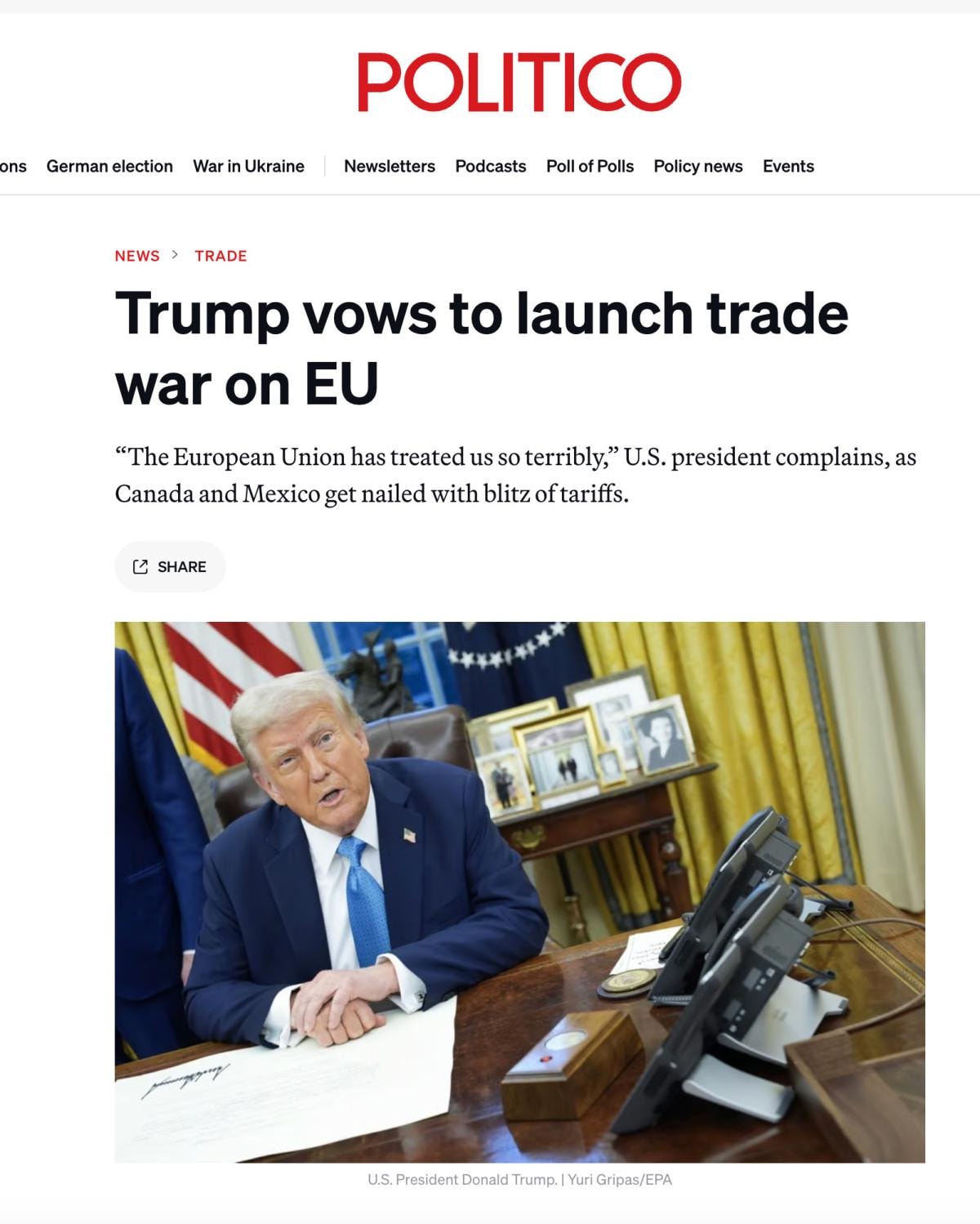 ABD merkezli Politico'nun haberine göre, Oval Ofis'te gazetecilere konuşan Trump, bloğun "ABD'ye çok kötü davrandığını" ifade etti.