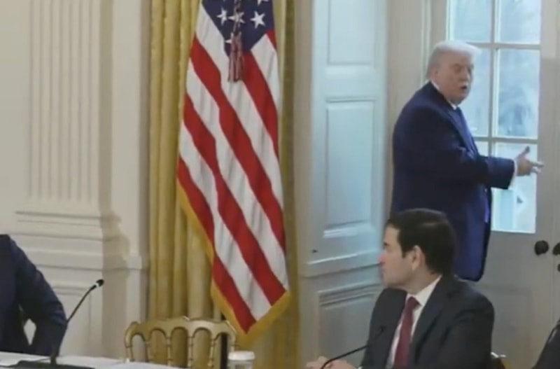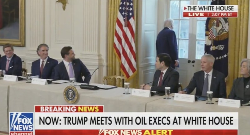 Trump toplantı sırasında, petrol yöneticileriyle oturduğu masadan kalkarak pencereye yöneldi.
