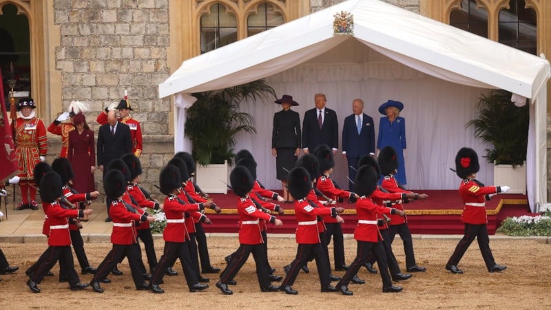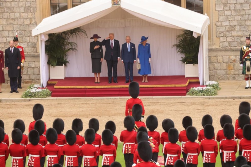 ABD Başkanı Donald Trump ile First Lady Melania Trump, Londra'daki Windsor Kalesi'nde İngiltere Kralı 3. Charles ve Kraliçe Camilla tarafından görkemli bir resmi törenle karşılandı.