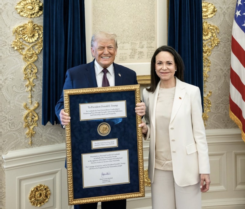 ABD Başkanı Trump, Machado ile görüşmesine ilişkin sosyal medya hesabından yaptığı açıklamada da, muhalif liderin kendisine Nobel Barış Ödülü'nü sunduğunu ifade etmiş ve bunun karşılıklı saygıya dayalı "çok güzel bir jest" olduğunu vurgulamıştı.