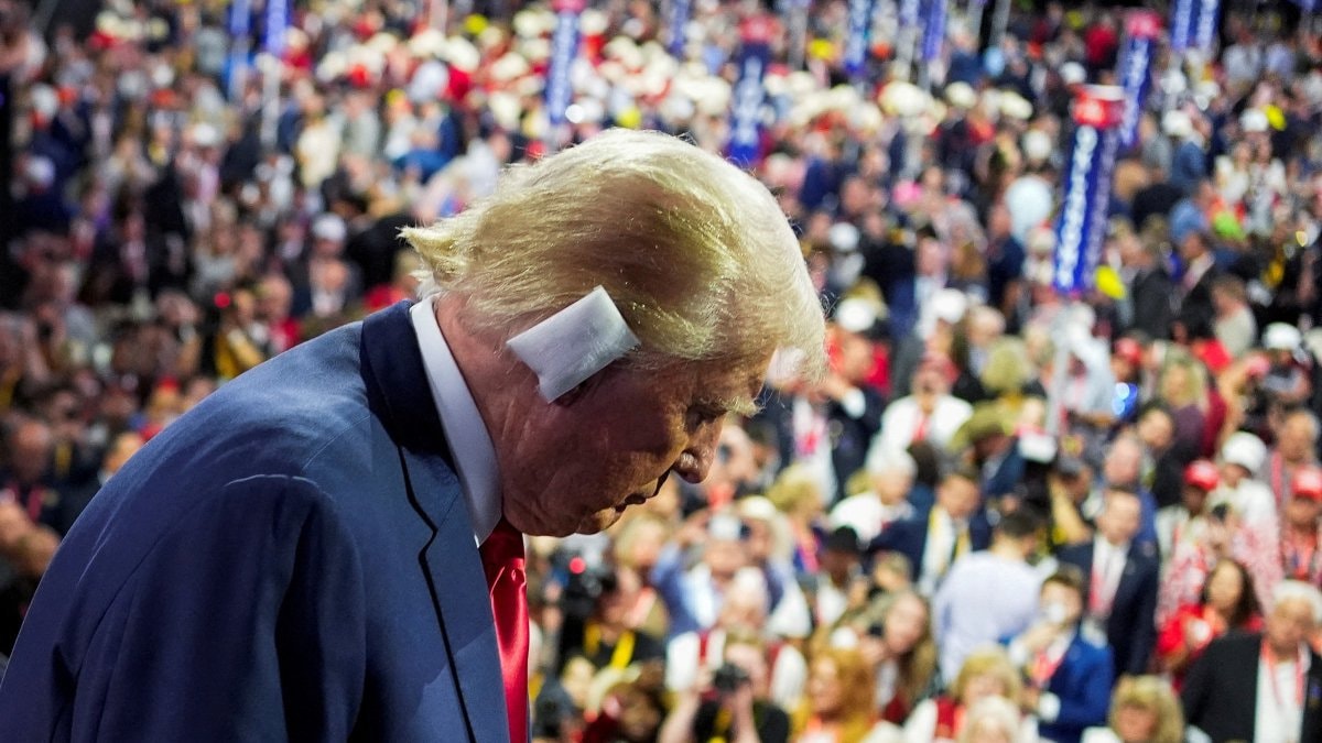 Trump, seçim mitingi sırasında kürsüde konuşurken silah saldırı sonucu sağ kulağından yaralandı.