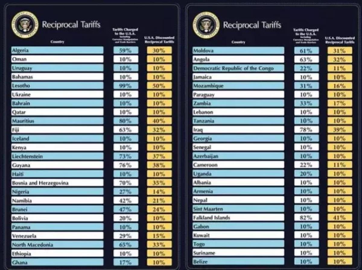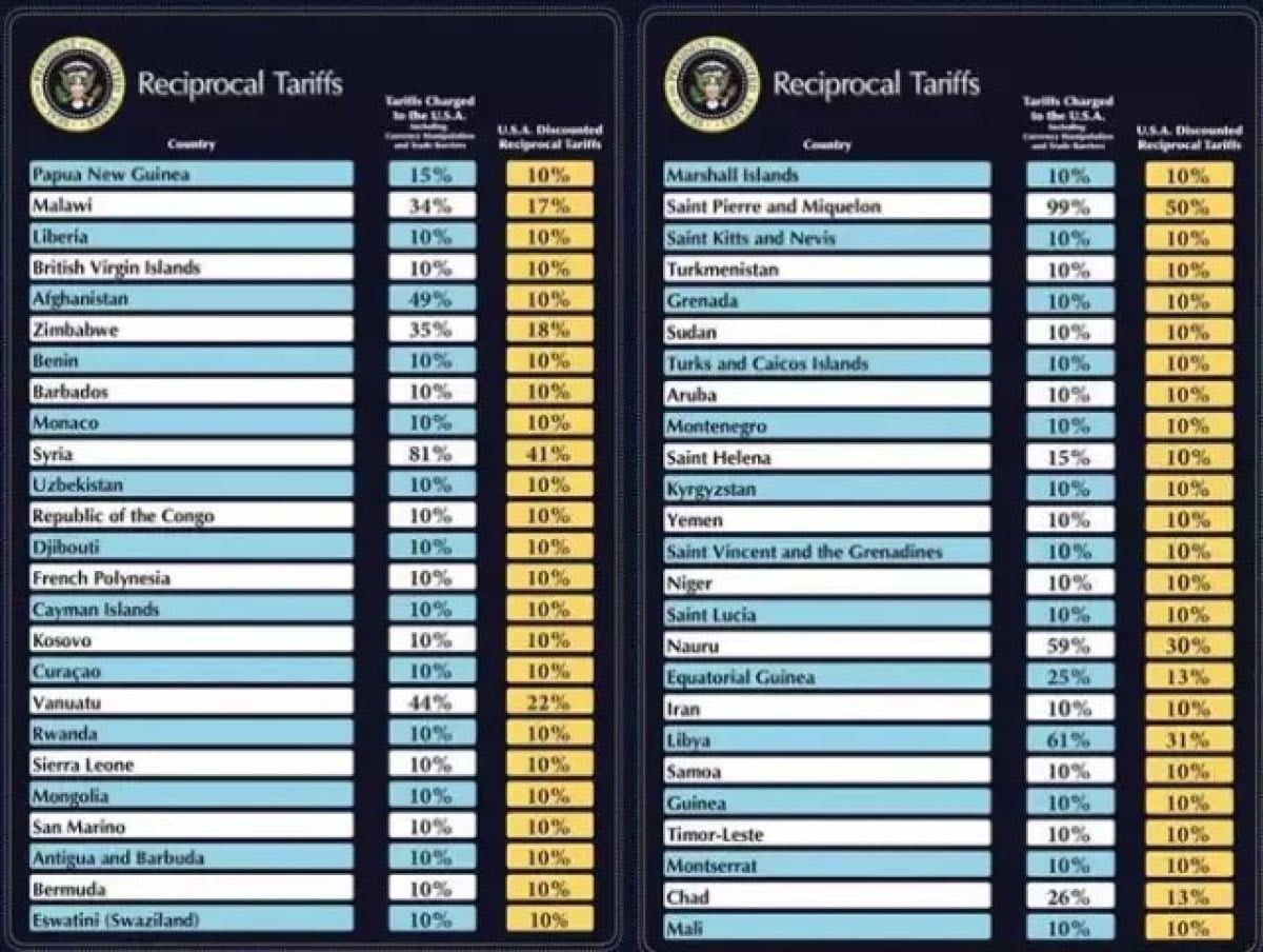 Trump açıklamasında, Vietnam'a yüzde 46, Çin’e yüzde 34, Hindistan'a yüzde 26, Japonya’ya yüzde 24, Avrupa Birliği’ne yüzde 20 gibi daha yüksek oranlar uyguladığını açıkladı.