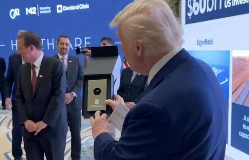 Burada Trump'a, 'gezegendeki en yüksek kaliteli' olarak tanımlanan bir damla petrol hediye edildi.