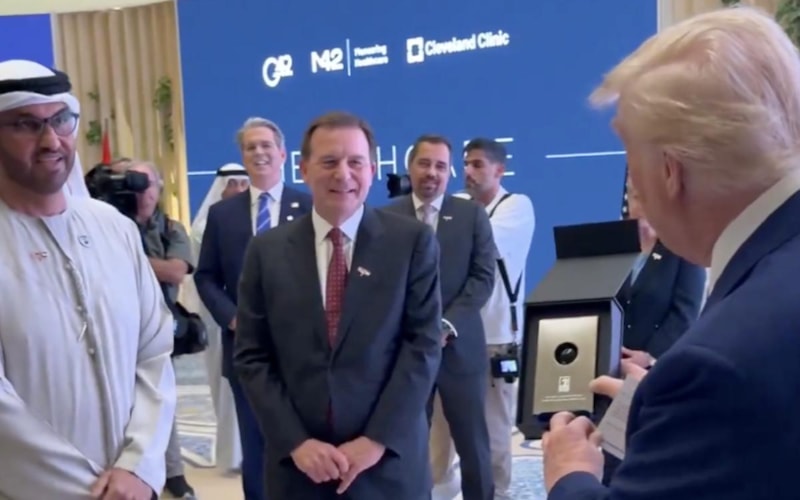 Orta Doğu turunun son ayağı olan Birleşik Arap Emirlikleri'ne ziyarette bulunan ABD Başkanı Donald Trump, BAE Devlet Başkanı Nayhan'ın 'dünyanın en pahalı petrolü' olarak adlandırılan petrolden bir damla hediye etmesine esprili bir yaklaşımla sitem etti.