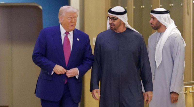 Üçüncü durağı olan BAE'de Devlet Başkanı Muhammed bin Zayed Al Nahyan ile bir araya gelen Trump, baş başa görüşmesinin ardından yaptığı açıklamada ise BAE'nin ABD'ye on yılda yapacağı 1,4 trilyon dolarlık yatırım için teşekkür etti.