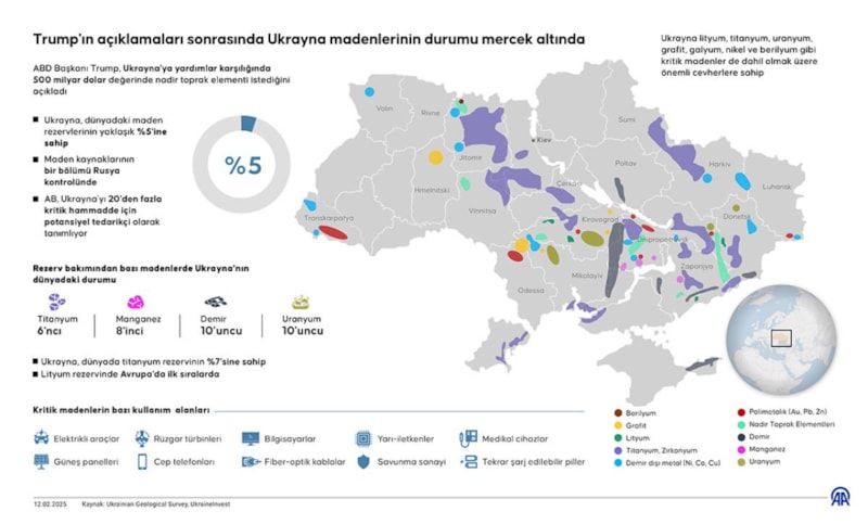 Trump'ın Ukrayna'nın madenlerinden ABD'deki yoğun sanayi üretiminde yararlanmak ve Çin'in nadir toprak elementlerindeki üstünlüğünü kırmak için ilgilendiği tahmin ediliyor.