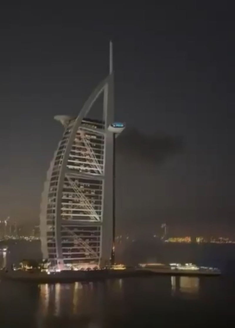 DUBAİ’DE BURJ EL-ARAB OTELİNE FÜZE İSABET ETTİ, YANGIN ÇIKTI