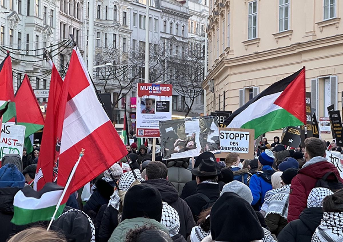 Avusturya'nın başkenti Viyana'da, İsrail'in, 23 binden fazla Filistinlinin ölümüne neden olan saldırıları bir kez daha protesto edilerek, acil ateşkes çağrısında bulunuldu.