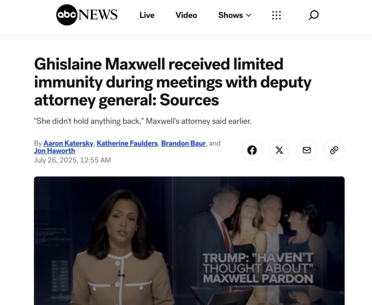 Reşit olmayan kızları seks ticaretine zorladığı için 20 yıl hapis cezası alan Ghislaine Maxwell, Adalet Bakanlığı’nın ikinci ismi Todd Blanche ile iki gün süren görüşmelerde sınırlı bağışıklık (proffer immunity) alarak ifade verdi. Maxwell, bu görüşmelerde yaklaşık 100 kişi hakkında soruları yanıtladı. Bu görüşmeler, 20 yıl hapis cezası alan Maxwell’in cezasına itiraz sürecinde gerçekleşti.