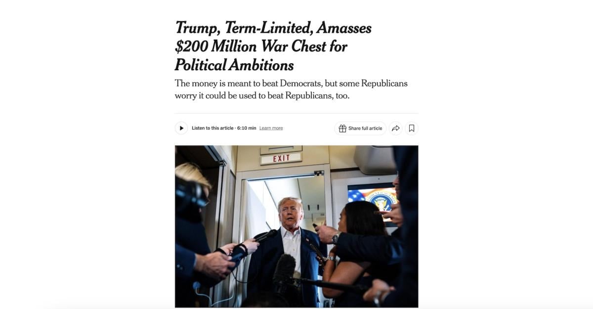 Donald Trump’ın siyasi etkisini sürdürmek için kurulan MAGA Inc. adlı Siyasi Eylem Komitesi (PAC, siyasi kampanyaları desteklemek için sınırsız bağış toplayabilen bir örgüt), 2025’in ilk yarısında 177 milyon dolar bağış topladı.