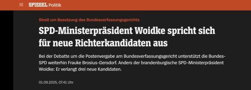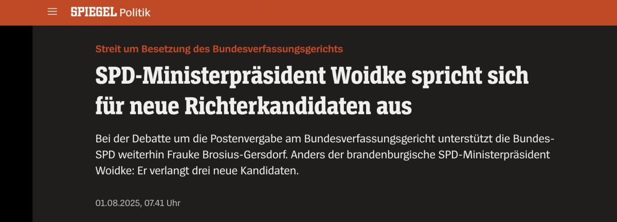 CSU Bölge Grubu Lideri Alexander Hoffmann, yeni bir aday paketi önererek, mevcut adayların tümünün veya bir kısmının değiştirilebileceğini belirtti ancak bu, SPD ve Yeşiller’den sert tepki gördü. SPD lideri ve Şansölye Yardımcısı Lars Klingbeil, Brosius-Gersdorf’a desteklerini sürdürürken, Brandenburg Eyalet Başbakanı Dietmar Woidke (SPD), tüm adayların geri çekilip sürecin sıfırlanmasını savundu. Bu, federal SPD’nin pozisyonundan farklı bir tutum olarak dikkat çekti.