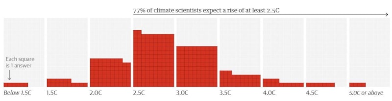 Tamamı yetkili Hükümetlerarası İklim Değişikliği Paneli'nden (IPCC) olmak üzere ankete katılanların yüzde 80'i, küresel ısınmanın sanayi öncesi seviyelerin en az 2,5 derece üzerinde olacağını öngörüyor.