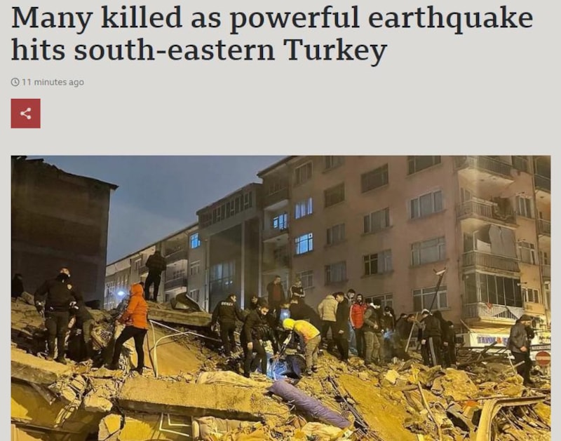 BBC, "Türkiye'nin güneydoğusunu vuran güçlü depremde çok sayıda kişi öldü" dedi.