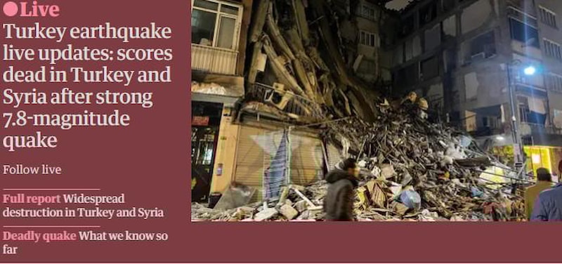 Depremle ilgili canlı anlatım sayfası oluşturan The Guardian, sarsıntıdan birkaç saat sonra kurtarma ekiplerinin etkilenen insanları bulmak için harekete geçtiğini, yıkımın boyutunun yavaş yavaş şekillenmeye başladığını yazdı.
