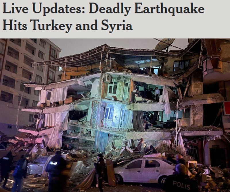 Gelişmeleri canlı aktaran New York Times, Türkiye'deki ölümcül depremin ülke sınırlarının dışında da hissedildiğini yazdı.