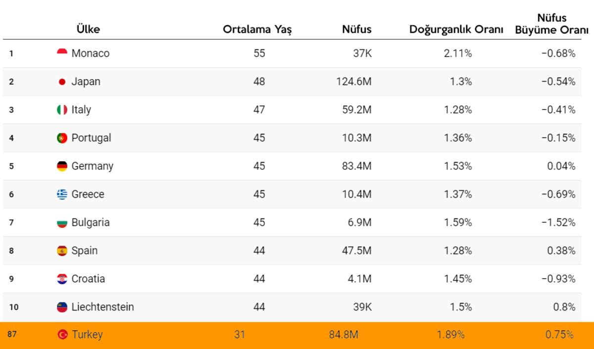 BM'nin 2022 yılına ait verilerine göre, Türkiye'nin ortalama yaşı 31... 84.4 milyon nüfuslu ülkemizin doğurganlık oranının yüzde 1,89 olduğu kaydedildi.