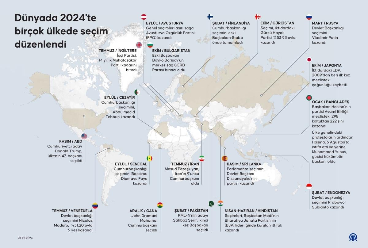 Birçok ülke 2024'ü seçimlerle geçirdi..