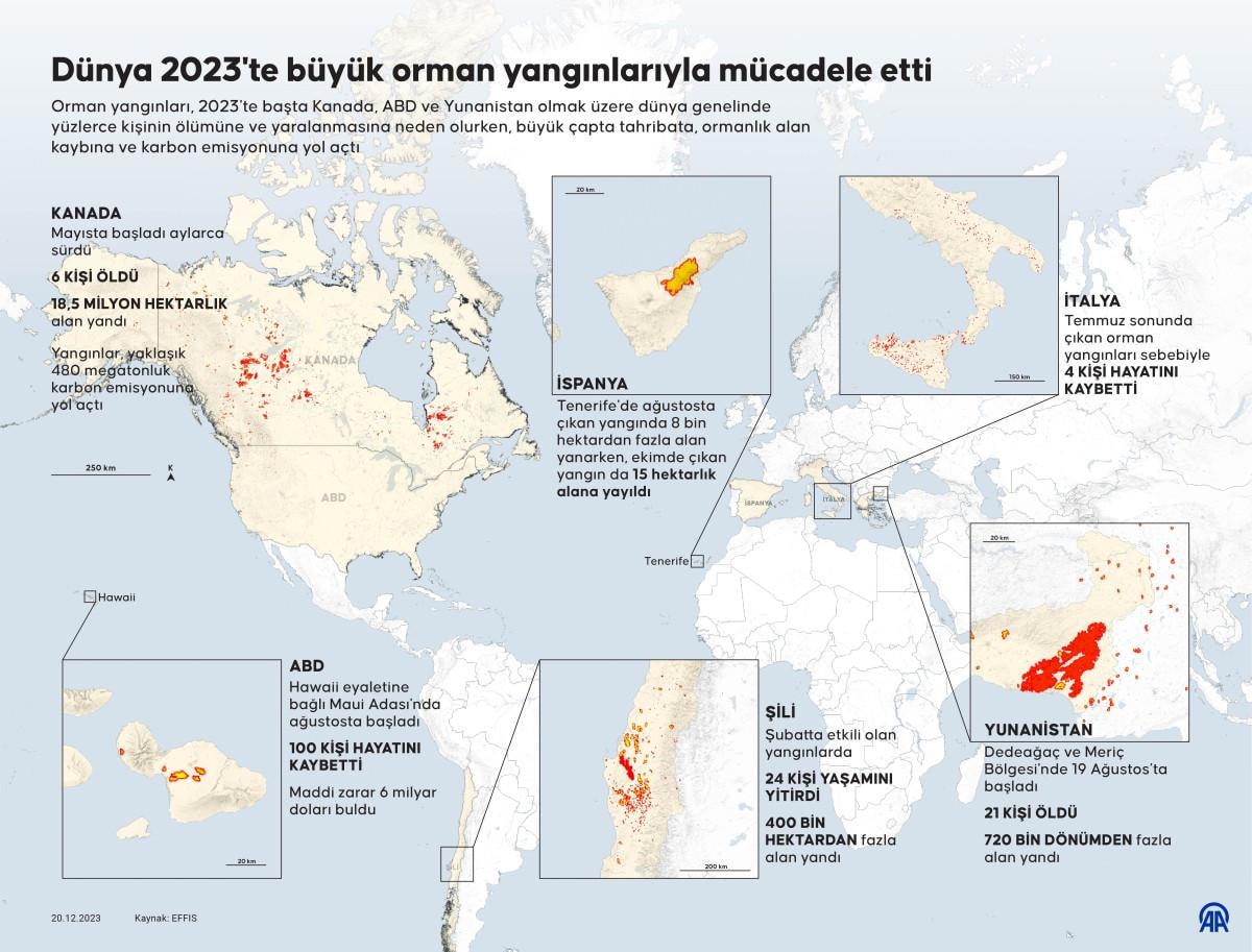 Orman yangınları, başta Kanada, ABD ve Yunanistan olmak üzere bu yıl dünya genelinde ciddi yıkıma, yüzlerce can kaybına ve binlerce kişinin tahliyesine neden oldu.