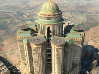 Suudi Arabistan krallığı, Kâbe'nin iki kilometre uzağına dünyanın en büyük otelini inşa etmeye hazırlanıyor. 1.4 milyon metrekarelik bir alan oluşturacak Abraj Kudai isimli otelin 12 kuleden oluşan maketi basına tanıtıldı.