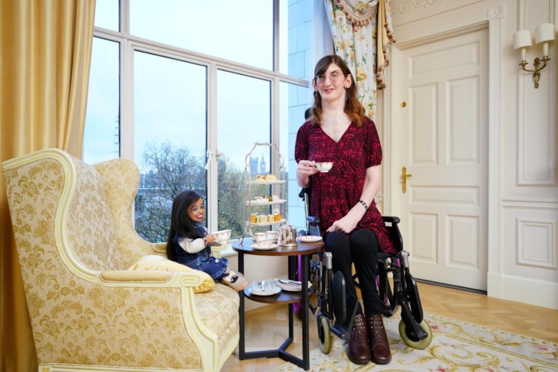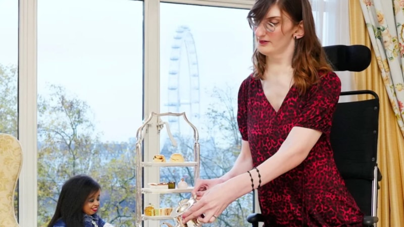 20. Guinness Dünya Rekorları Günü'nü kutlamak amacıyla bir otelde çay içen Gelgi ve Amge, birbirleriyle hikayelerini ve yaşam deneyimlerini paylaştı.