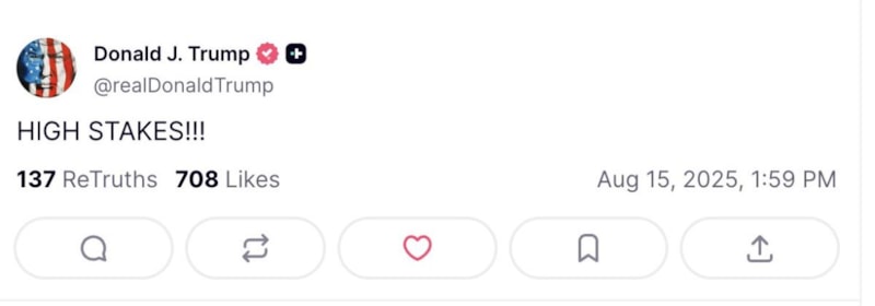Donald Trump görüşme öncesi kendi sosyal medya hesabından "Büyük risk" mesajını paylaştı.