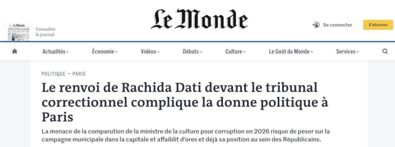 Fransa'nın gündeminde, Kültür Bakanı Rachida Dati’nin yolsuzluk ve nüfuz ticareti iddiaları yer alıyor. Dati, Renault-Nissan skandalıyla bağlantılı olarak yargılanmak üzere mahkemeye sevk edildi.