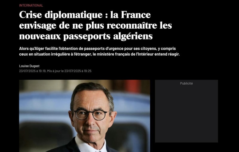 İçişleri Bakanı Retailleau, Cezayir pasaportlarının Fransa’da resmen tanınmaması yönünde kesin bir adım atılacağını açıkladı. Bu, Fransa'nın Cezayir’e karşı aldığı en sert diplomatik tavır olarak yorumlanıyor.