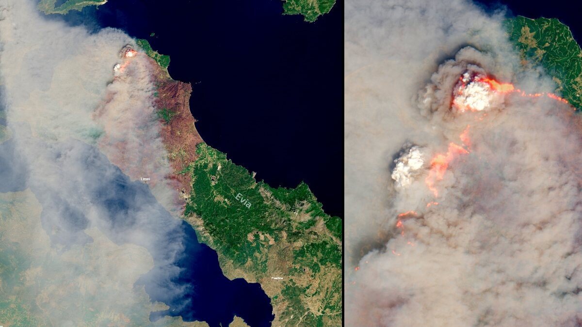 Avrupa Uzay Ajansı'nın (ESA) Kopernik programı dahilindeki Sentinel-2 uydusu, adadaki yangını görüntüledi.