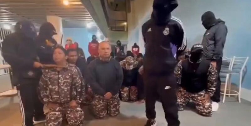 Sosyal medyada paylaşılan videolarda çete üyeleri tarafından kaçırıldıktan sonra başlarına silah dayanan polisler, Devlet Başkanı Noboa'dan yardım isterken görüldü.