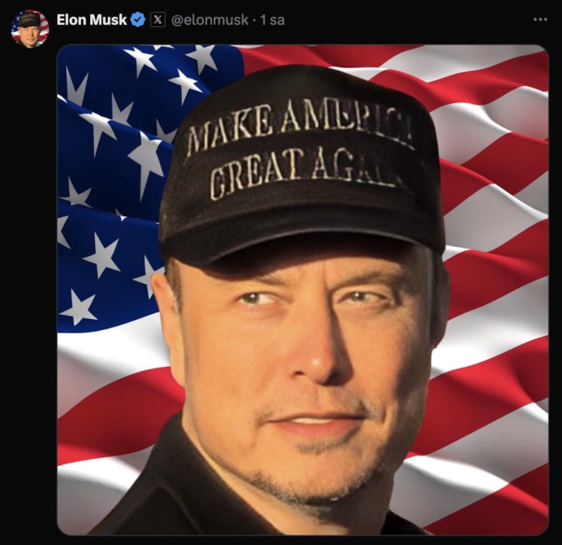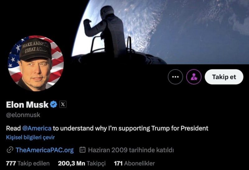 Musk ayrıca tüm mitingi 200 milyon takipçili X hesabından da canlı yayınlarken profil fotoğrafını da değiştirdi.
