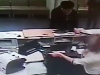 Sosyal medya üzerinden paylaşılan videoda, bozuk ATM’den parasını alamayan yaşlı adamın bastonu ile önce içerideki eşyaları dağıttığı, daha sonra ise bankoya gelen çalışana vurduğu kaydedildi. O anlar güvenlik kameralarınca kaydedildi.