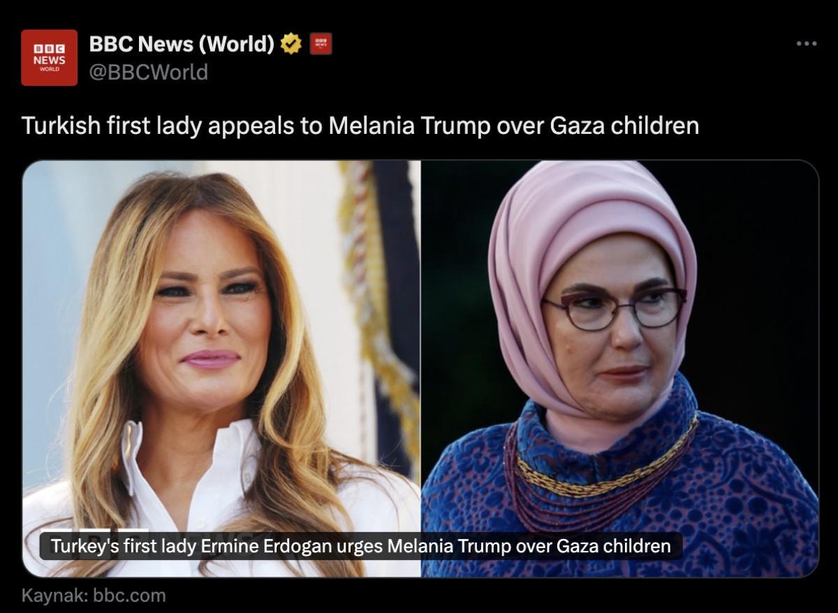 BBC, mektuba ilişkin internet sitesinde yer verdiği haberinde de "Türk First Lady'den Melania Trump'a Gazzeli çocuklar için çağrı" başlığı kullanıldı.