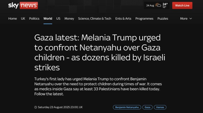 Emine Erdoğan'ın, Melania Trump'a Ukrayna'daki savaş için gösterdiği hassasiyeti Gazze'deki insani kriz için de göstermesi çağrısında bulunduğu mektup, dünya basınında birçok ajans ve haber sitesi tarafından manşetlere taşındı.