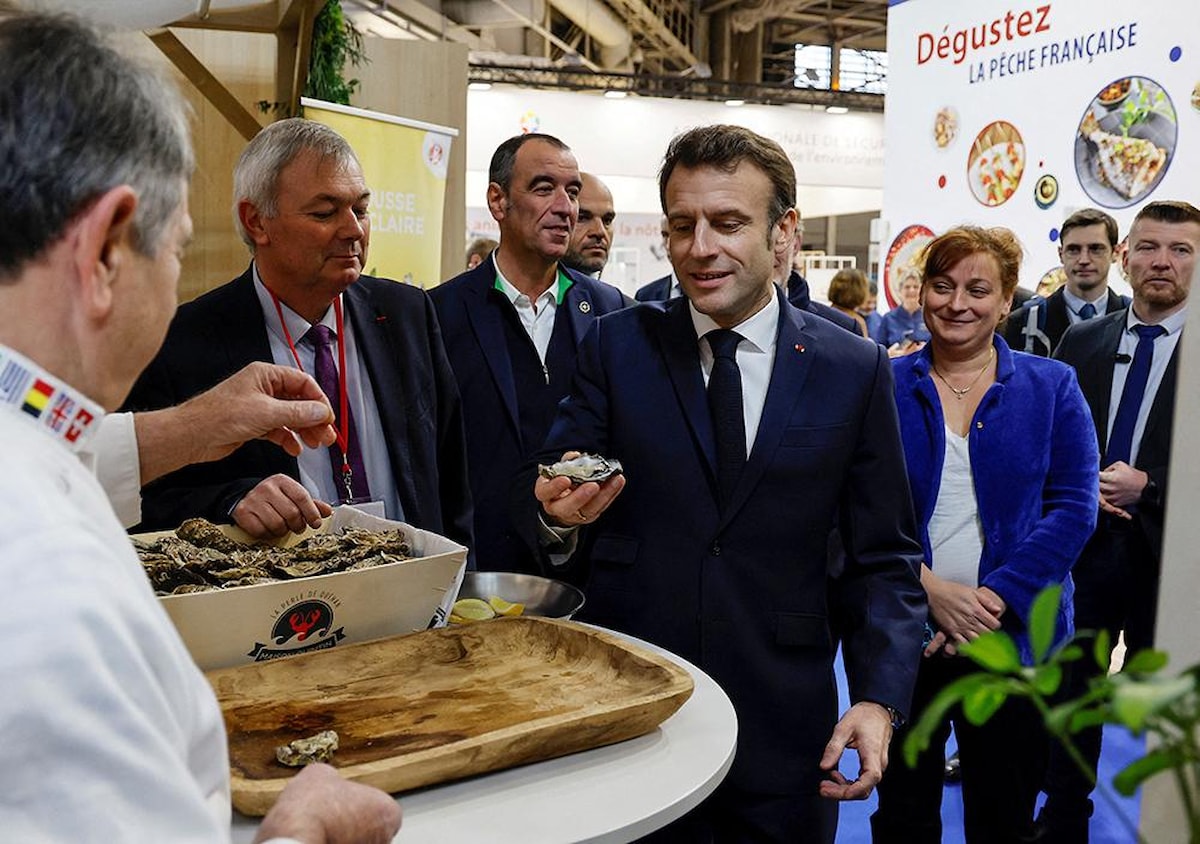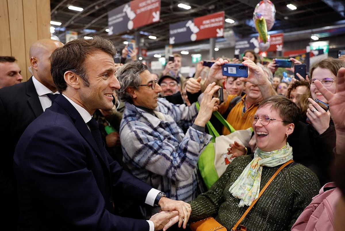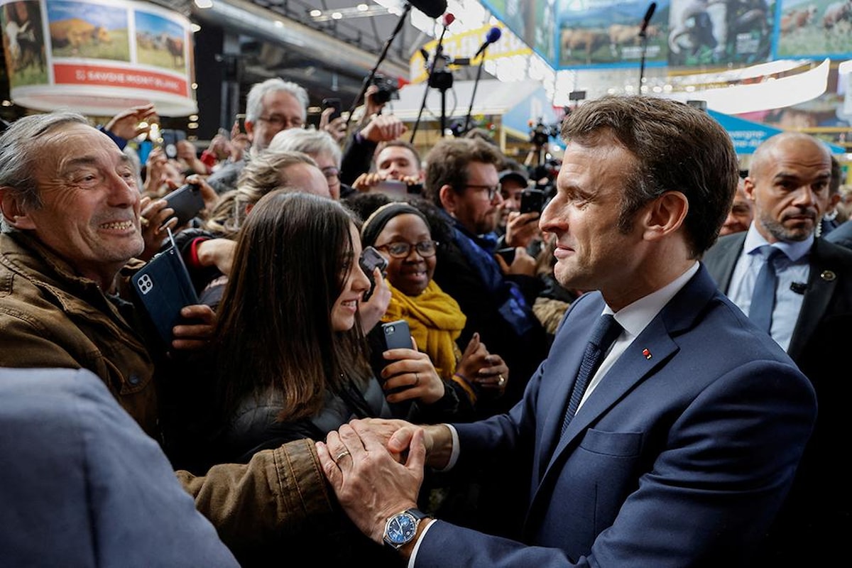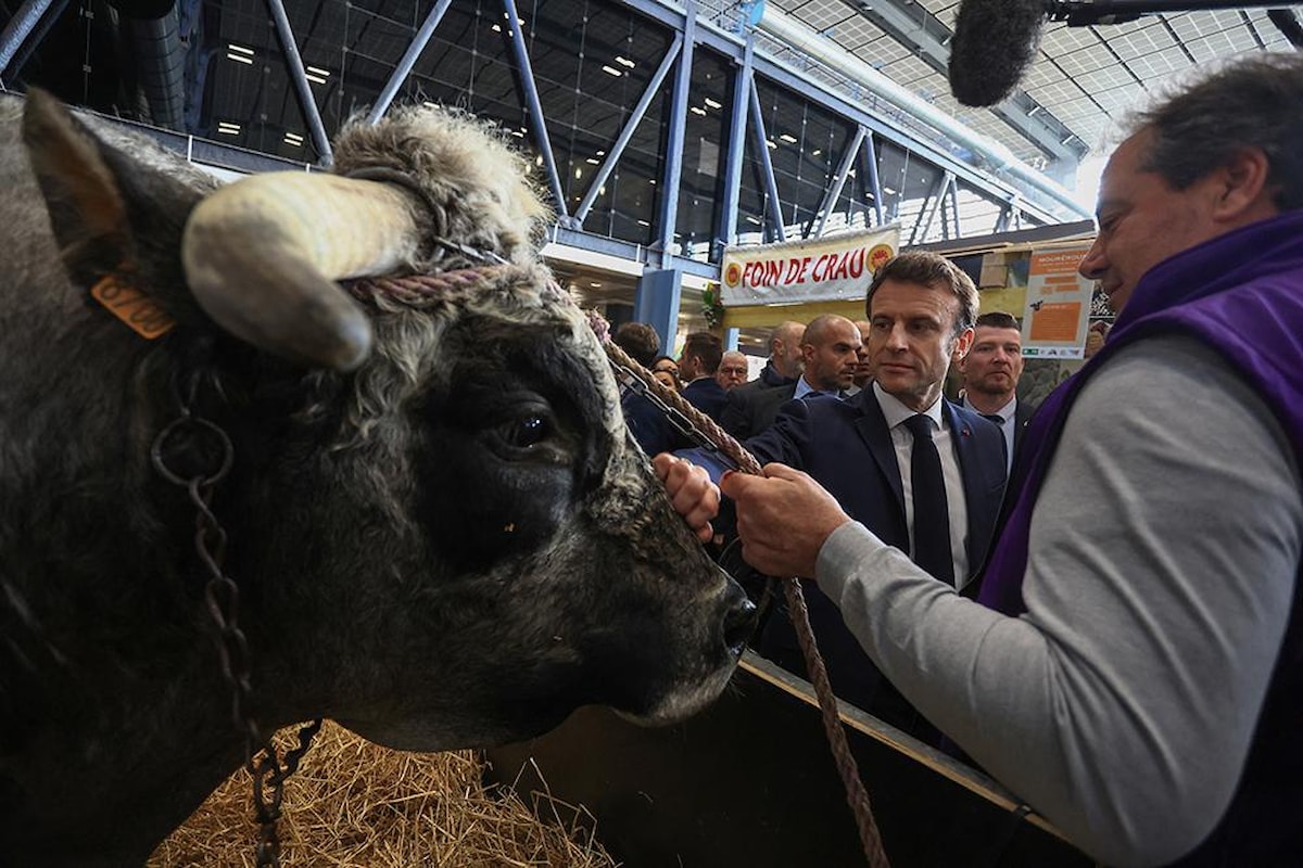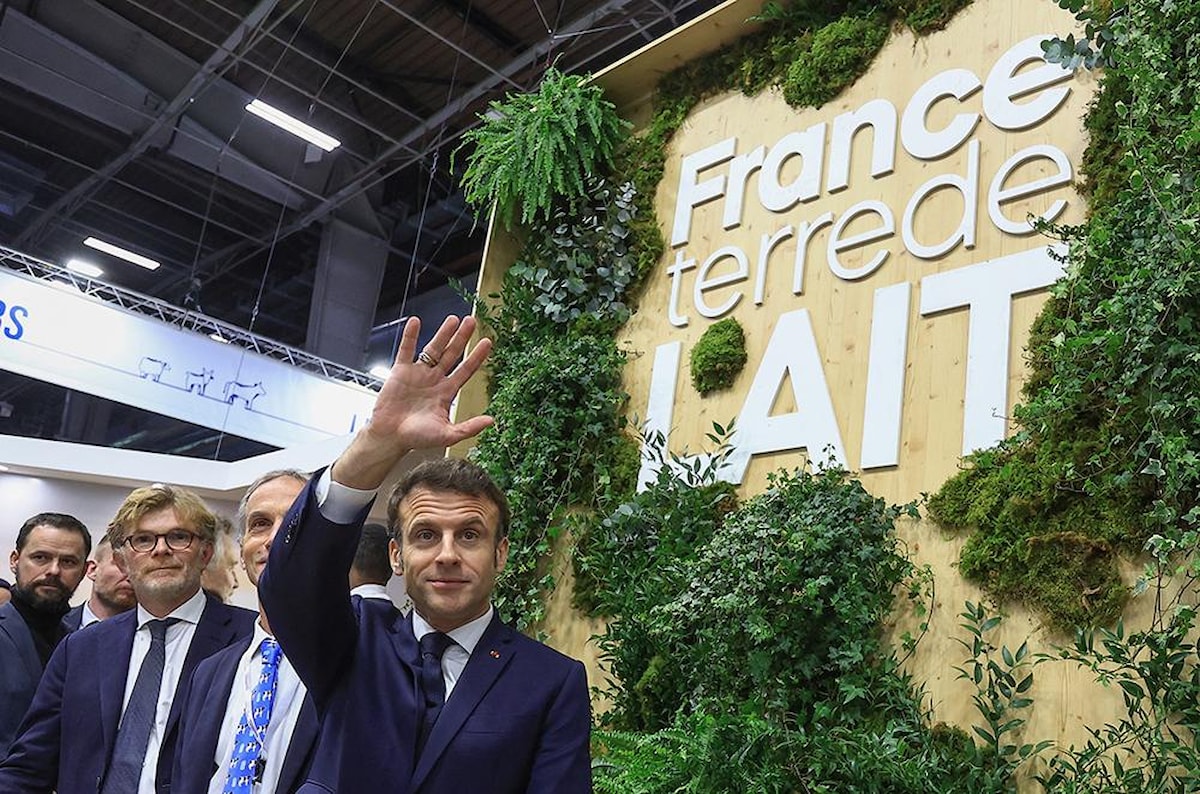 Fuar alanına gelen Macron, "Çok sıkı çalışan çiftçilerimizi desteklemek için buradayım." dedi.