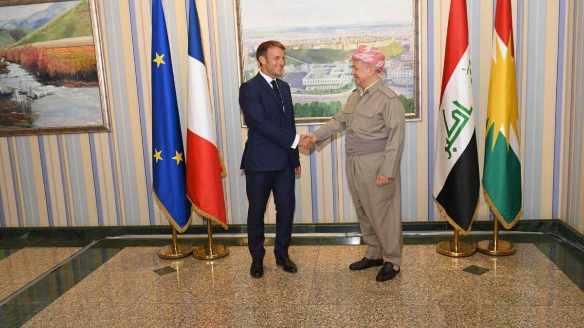 Fransa Cumhurbaşkanı Emmanuel Macron, Bağdat ve Musul'daki temaslarının ardından Erbil'e gelerek, Irak Kürt Bölgesel Yönetimi (IKBY) Başkanı Neçirvan Barzani ile görüştü.