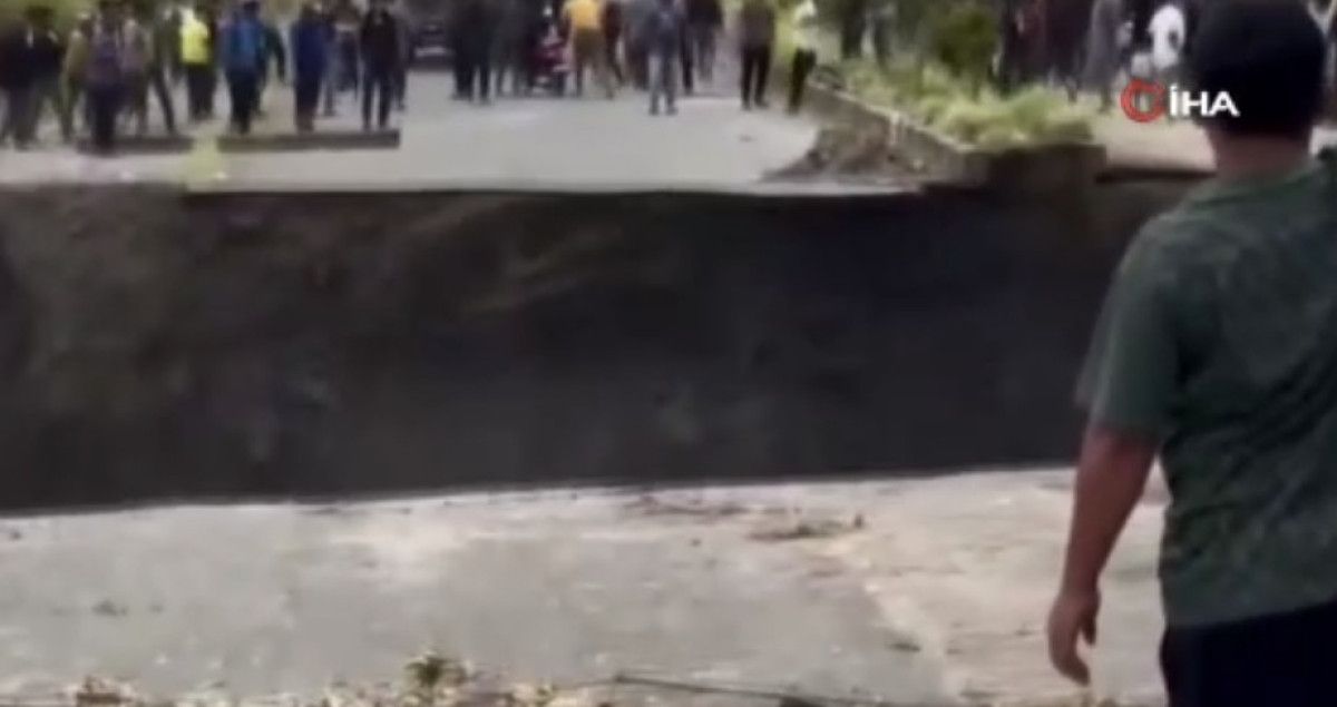 - Endonezya'da şiddetli yağışlar sel ve toprak kaymalarına yol açarak 4 şeritli bir yolda çökme meydana getirdi.