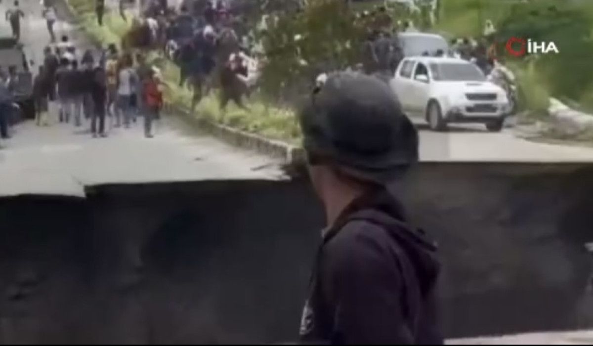 - Çöken yol üzerindeki yaya ve taşıtlar ölümden kıl payı kurtulurken, amatör kameralar tehlikeli anları kaydetti.