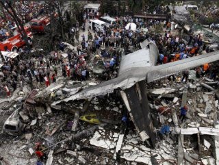 Endonezya'nın Sumatra Adası'nda, Medan kentinden havalanan askeri uçak 12 mürettebat ve 101 yolcuyla birlikte yerleşim alanının üzerine çakıldı ve tamamen yandı.