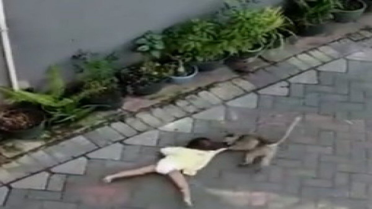Endonezya'da sokakta oturan küçük kız çocuğunu kaçırmaya çalışan maymun, görenleri şaşkına çevirdi.