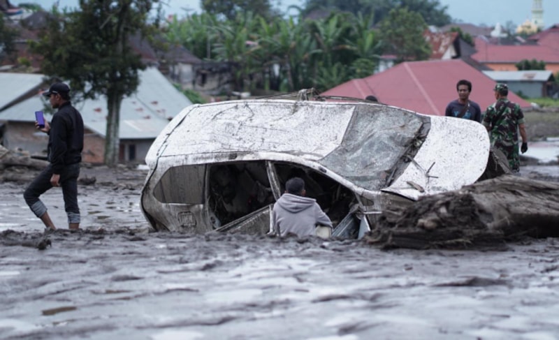 Endonezya'nın batısındaki Sumatra Adası'nda patlayan yanardağdan akan 'soğuk lav' ve su baskınları sebebiyle en az 41 kişi de hayatını kaybetti.