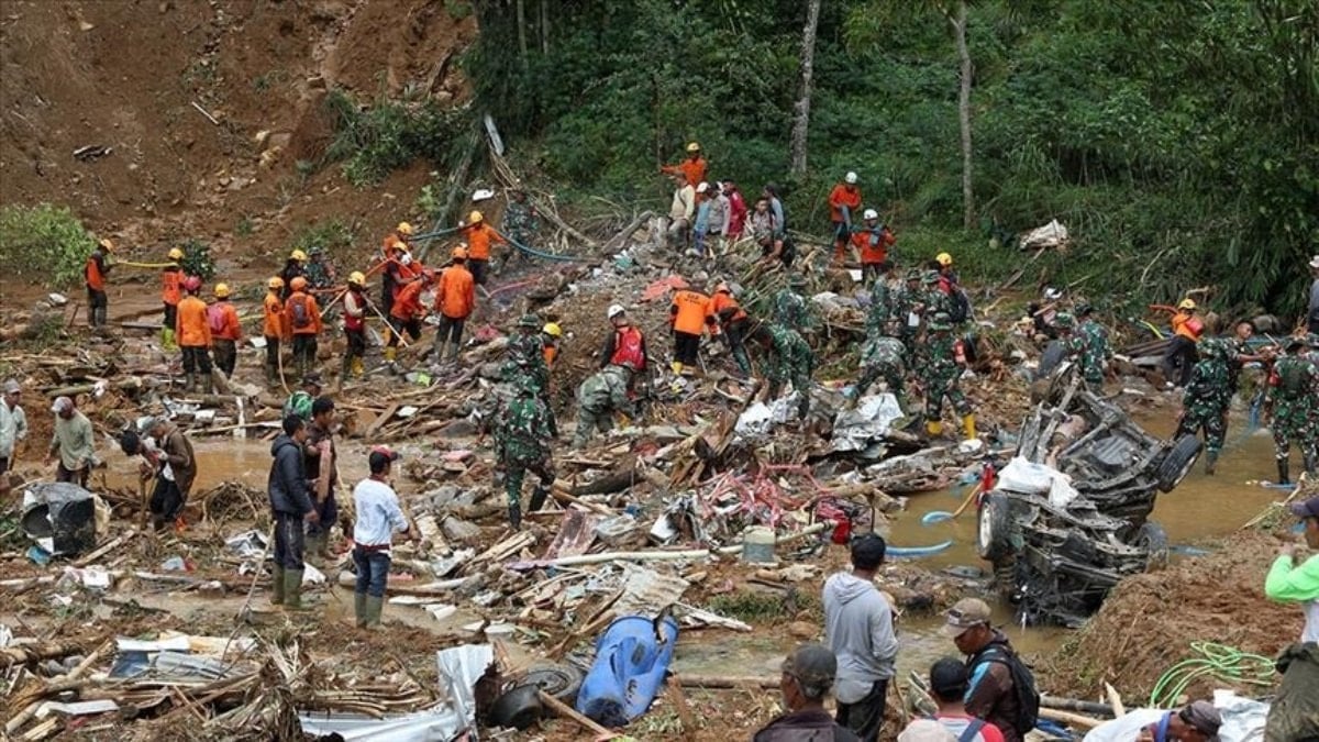 Endonezya'nın Batı Cava eyaletinde günlerdir etkili olan şiddetli yağışların ardından meydana gelen toprak kayması sonrası kurtarma ekipleri zorlu koşullarda çalışmalarını sürdürüyor.