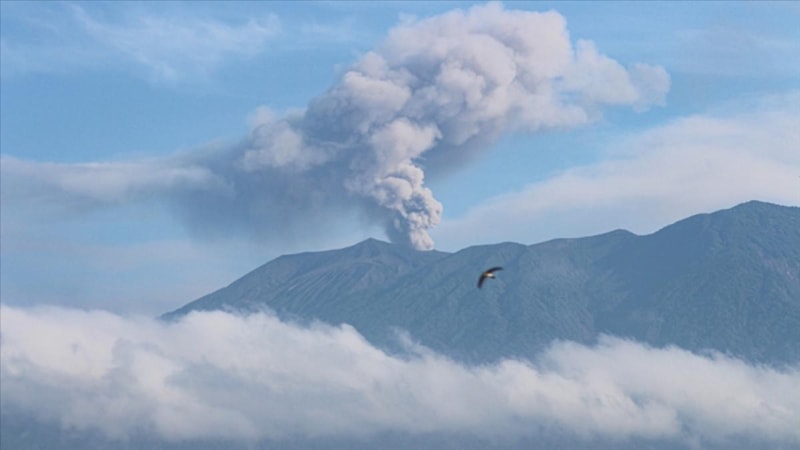 Açıklamada, volkanik hareketlilik yaşanan yanardağın patlaması sonucu yaklaşık 8 bin metre yüksekliğe kül püskürdüğü belirtildi.