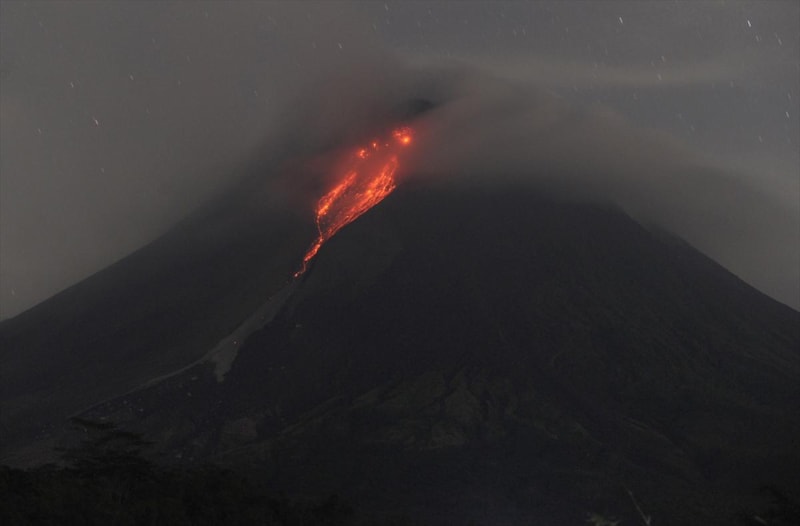 Endonezya'nın Cava Adası'ndaki Merapi Yanardağı'nda azık gözle görülebilen bir volkanik hareketlilik kaydedildi.