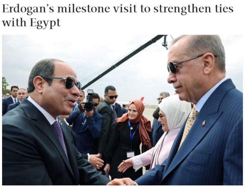 Türkiye Cumhurbaşkanı Recep Tayyip Erdoğan, Mısır'a 10 yıldan fazla bir süre sonra ilk ziyaretini gerçekleştirdi. İki güç, ekonomi ve güvenlik konularında birlikte çalışma sözü verdi.