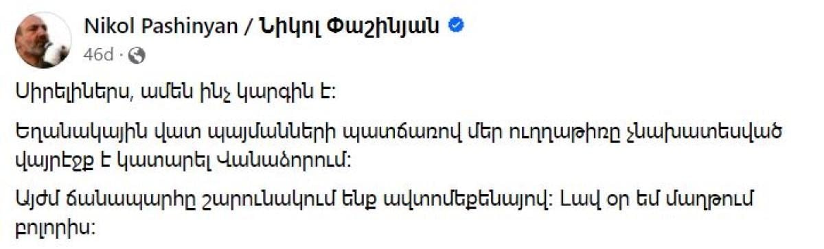 Sosyal medya hesabından açıklama yapan Paşinyan, "Canlarım, her şey yolunda" diye başladığı mesajında şu ifadeleri kullandı: