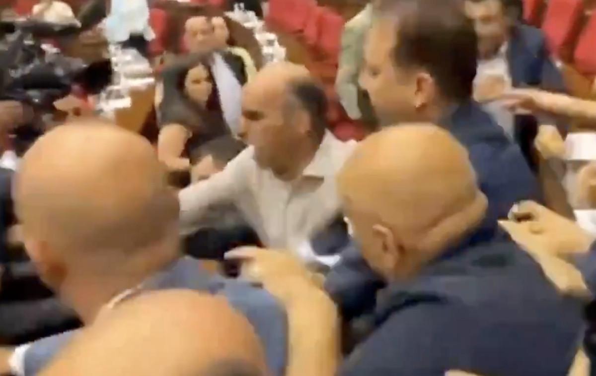 Kavga sırasında su şişeleri fırlatılırken, bazı milletvekilleri birbirini darbetti.