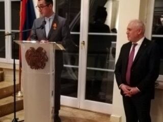 Ermenistan'ın Berlin Büyükelçiliğinin resmi Twitter hesabından paylaşılan haber ve fotoğrafta, elçilikte düzenlenen törenle Cem Özdemir'e Devlet Nişanı takdim edildiği açıklandı.